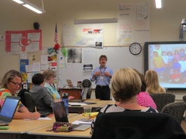 4.国际教育资源网络发展官David Potter介绍了一个世界教师交流平台,在这个平台上有丰富的已经开展了的跨国间项目学习的资源,可用于日后我校与其他国家教育者共同合作,将北京教育、中国教育推向世界舞台。