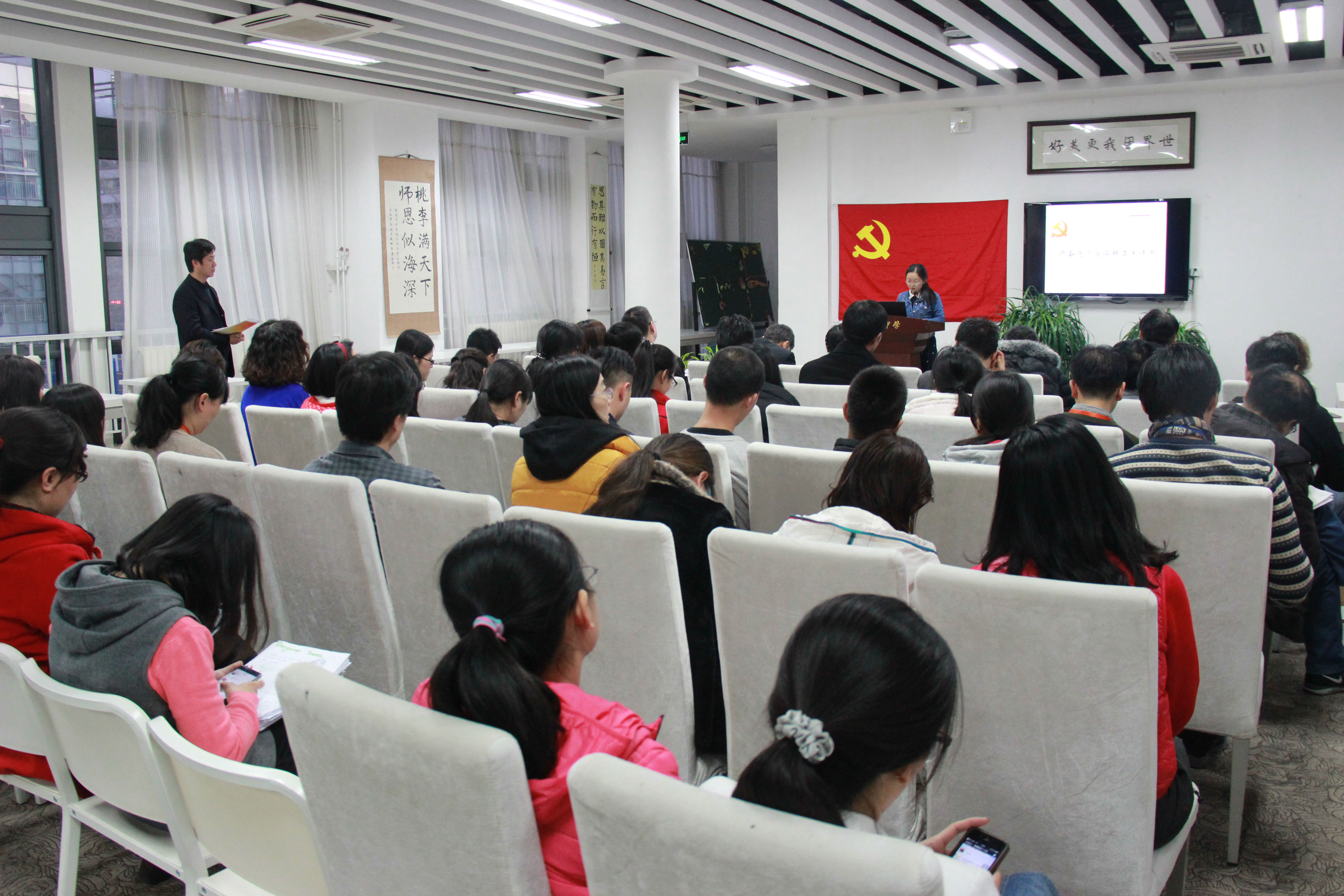 为进一步贯彻落实党的十八届六中全会精神,以党的方针政策指导教育事业的健康发展,切实增加全体党员的纪律和规矩意识,主动适应当前党和国家政治新形势,新常态,12月1号,学校党支部召开全体党员大会,学习党的十八届六中全会精神。大会由党支部书记任炜东主持,副校长邓珩做了《学习党的十八届六中全会精神》专题党课。