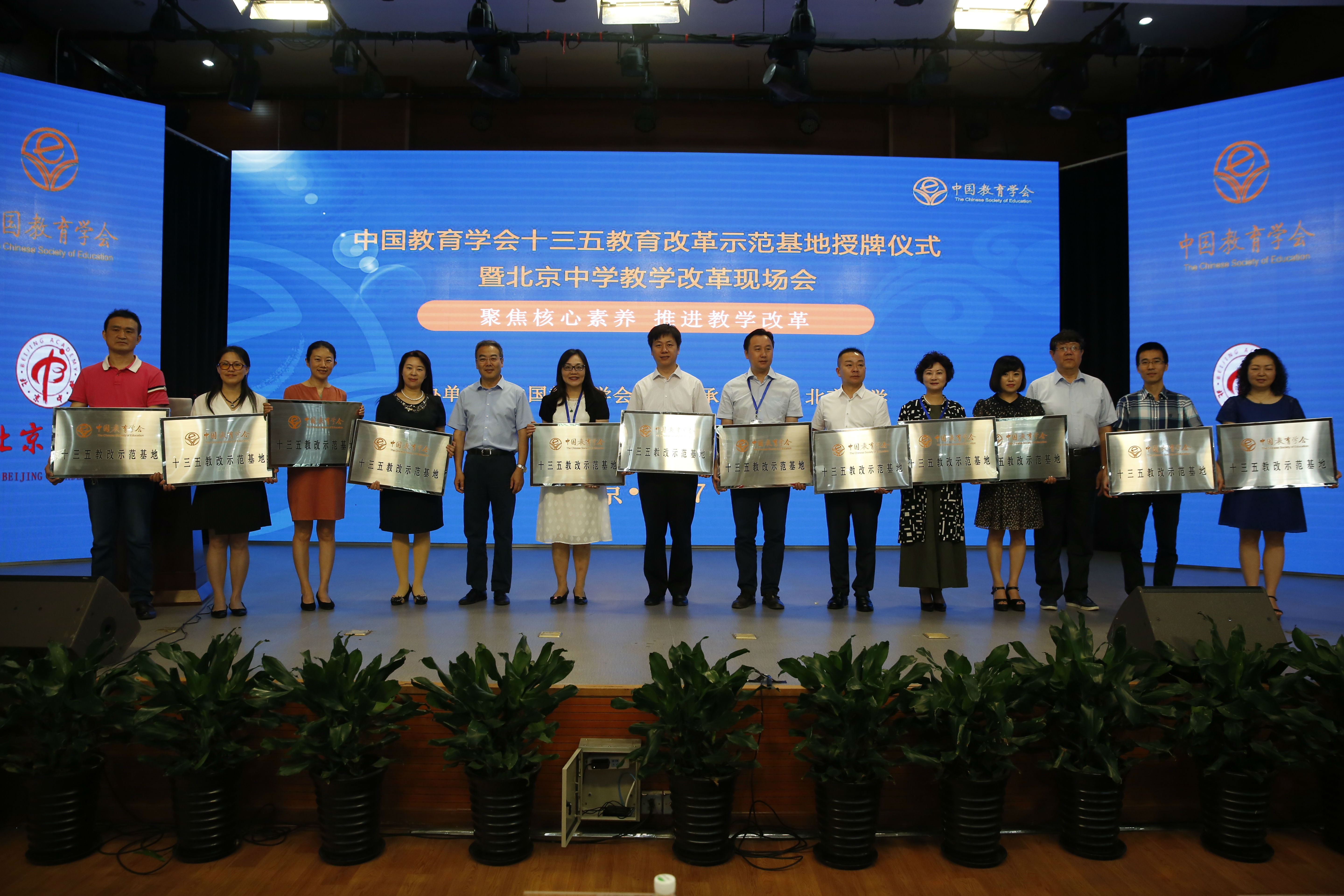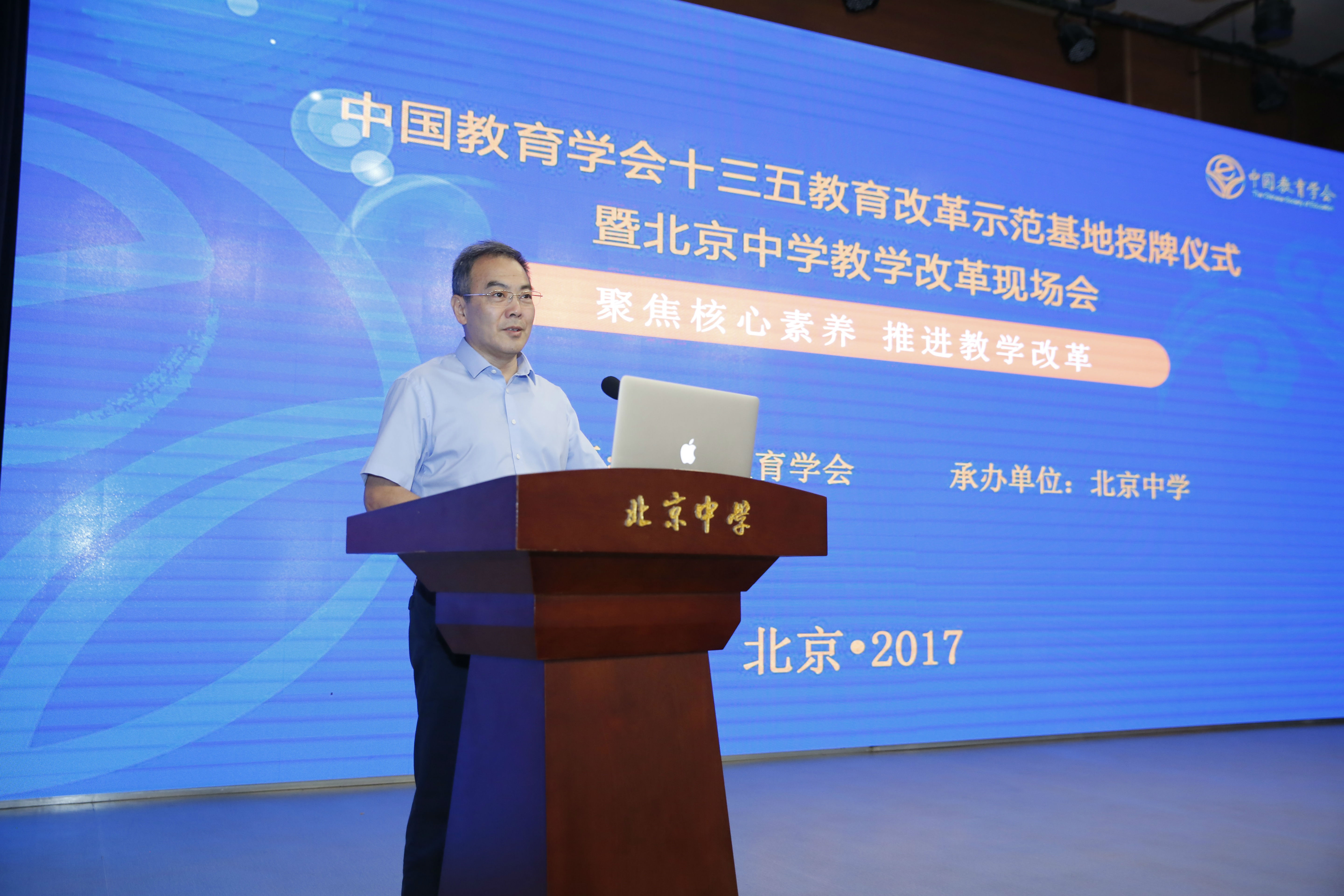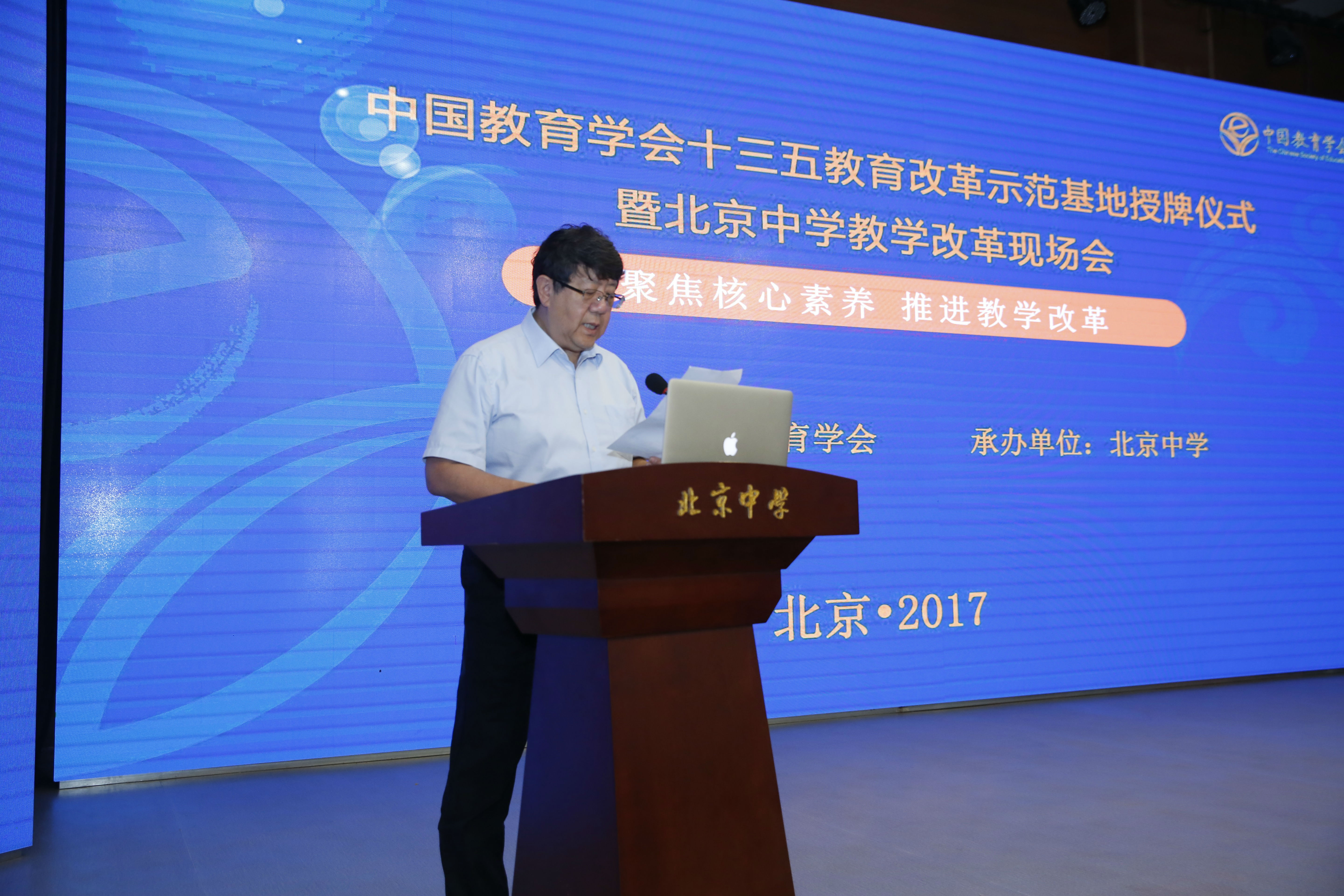 会议第一天,首先由中国教育学会常务副会长兼秘书长杨念鲁先生针对“聚焦核心素养促进教学改革”主题进行了报告,重点介绍了学会在未来五年支持中小学推进基于核心素养的教学改革的整体规划,并对今后的教学改革提出更高的追求。中国教育学会副秘书长田京生先生主持中国教育学会十三五教改示范基地校授牌仪式,北京中学等12所中学获颁“十三五教育改革示范基地”。