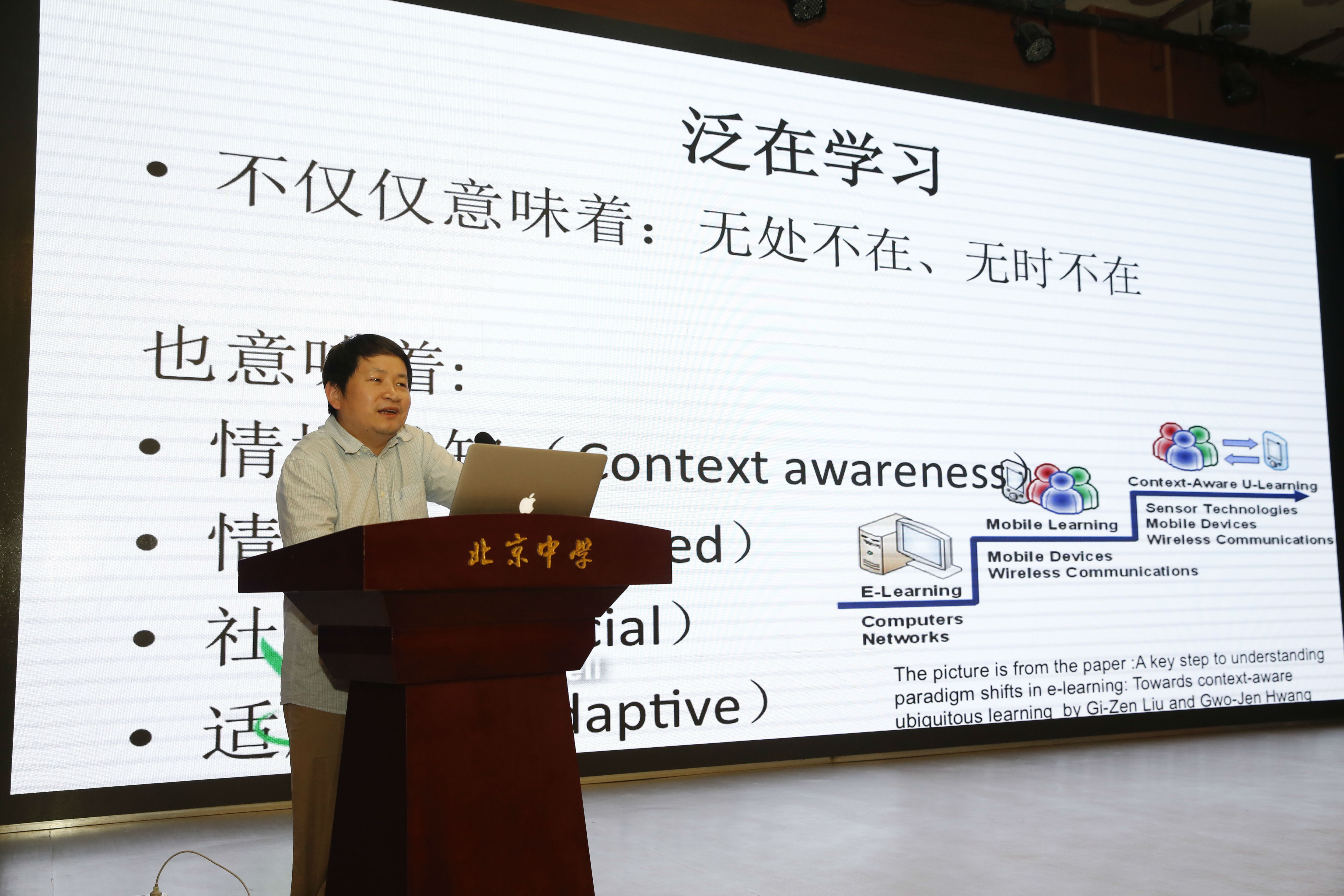 下午,余胜泉教授从学习方式变革角度带来了“泛在学习环境的学习资源组织研究”的精彩报告。余教授认为随着时代的发展,人们要求获得结构开放的、动态生成的、持续进化发展的学习资源系统,余教授带领自己的研究团队在此基础上提出了学习元的概念,并结合高校和中学的教学实践深入浅出的阐释了如何在泛在学习环境中设计活动,组织学习资源,从而促进学习者的认知投入和知识建构。余教授的讲座为中学教学带来了信息化教育科研领域的新成果,指明了未来学校信息化教学的方向。