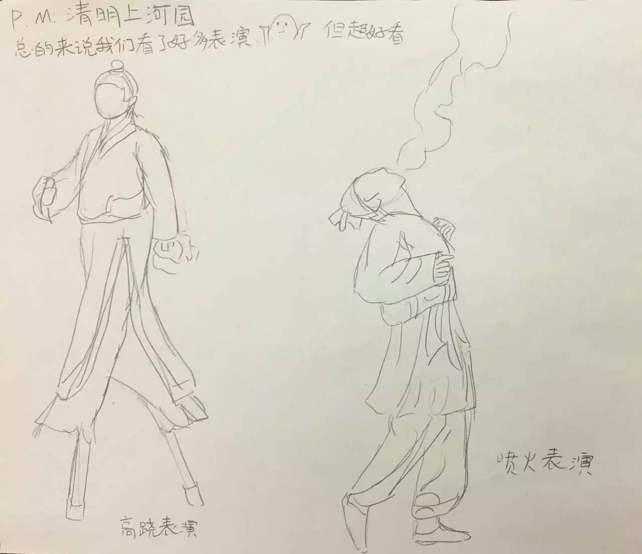 我们走进了以巨幅画卷《清明上河图》为蓝本,再现东京开封的繁华景象的大型民俗风情游主题公园——清明上河园,观赏了许多民风民俗的表演。如,喷火表演,马术表演,高跷表演。但是,令我印象最深的还是包公巡案的小剧目。本剧讲的是张三和李四抢一块羊皮,都说这块羊皮是自己的,包公就帮他们审案。他们闻了闻羊皮的味道,闻到羊皮上有盐味。张三是卖盐的,李四是砍柴的,所以确定了羊皮是张三的。从这部短剧也可以看出包公办案严谨,十分机智。