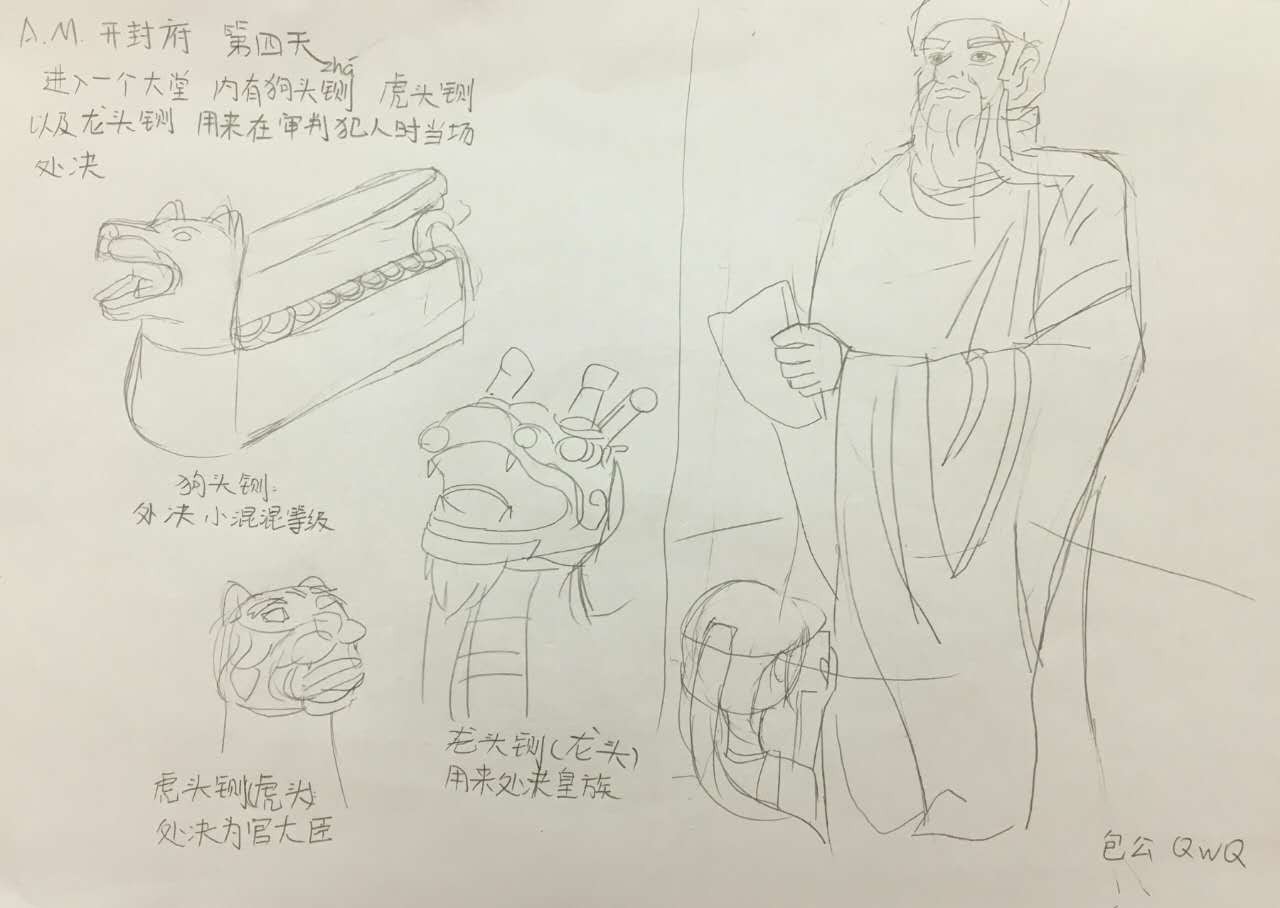 早晨的阳光还未那么刺眼,是一种很柔和的光线,伴随着我们一起上路。在近两个小时的跋涉后,我们来到了开封府。开封府里全部是关于宋朝时期的历史文化,其中让我印象最深刻的就是包拯包大人。