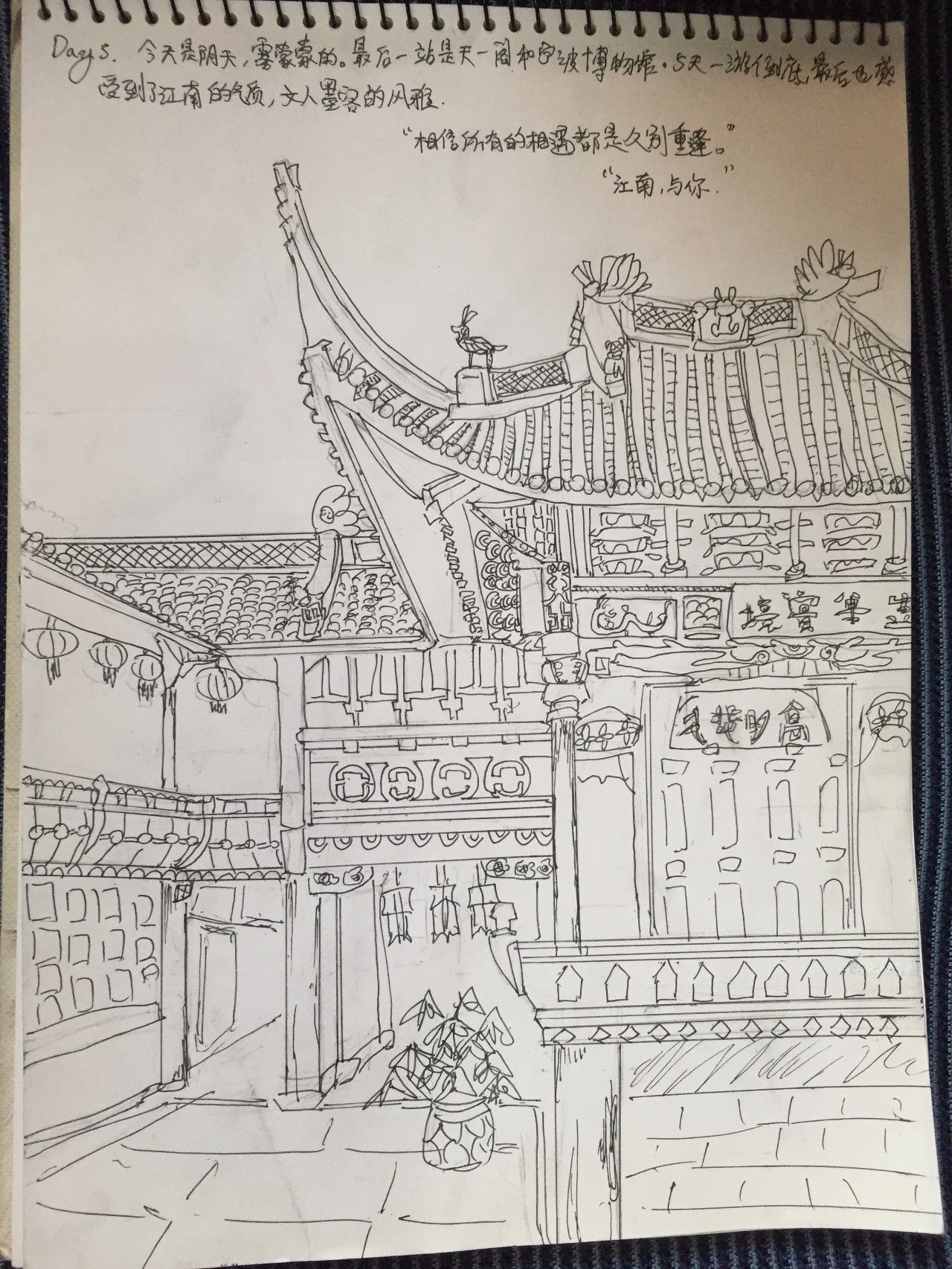 这是我在江南度过的最后一天,眷恋、不舍、悲伤,这些情绪交杂着、碰撞着,出现在我的心中,但我坚信,我只需要享受这仅剩的时光,在以后的梦中仔细回味这几天的美好,怀着憧憬与感恩的心再向着下一个目标进发,就可以了。