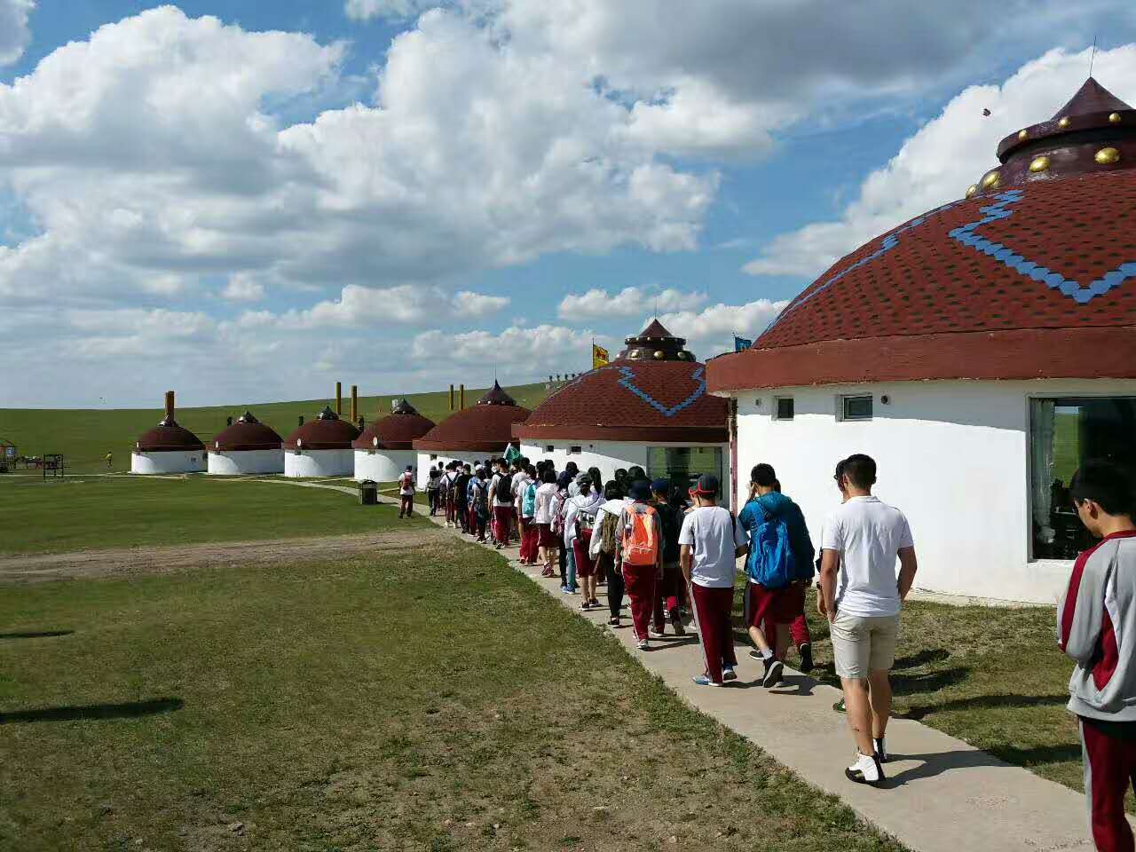 2017年7月18日清晨,北京中学九年级学生和导师共120人,从首都国际机场出发,开启了为期一周的初中学段阅历课程“中华文化寻根之旅”系列的最后一站——内蒙行。从满洲里国际机场出来,我们就一头扎进呼伦贝尔草原腹地,在全体导师、呼伦贝尔民俗专家和当地牧民的带领下,九年级全体同学品尝下马酒、学说蒙古语、学唱蒙古歌、祭祀敖包塔、捡拾牛马粪、举办草原诵诗会,参加篝火狂欢夜,在深入了解蒙古族传承千年的传统部落习俗,和亲身体验返璞归真的纯正牧民生活的缤纷活动中,开启了游学内蒙第一天的辽阔旅程。