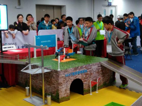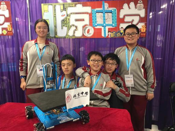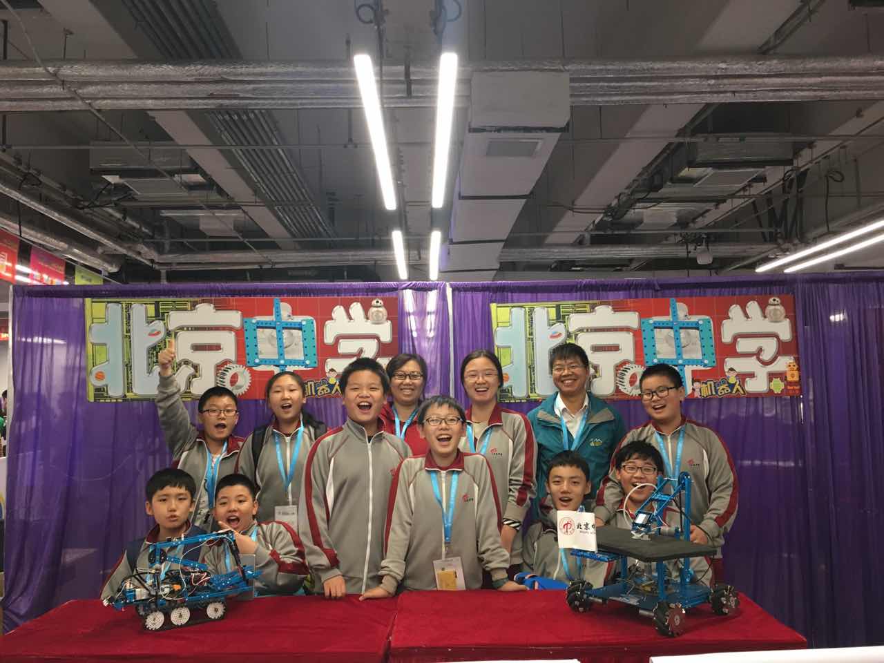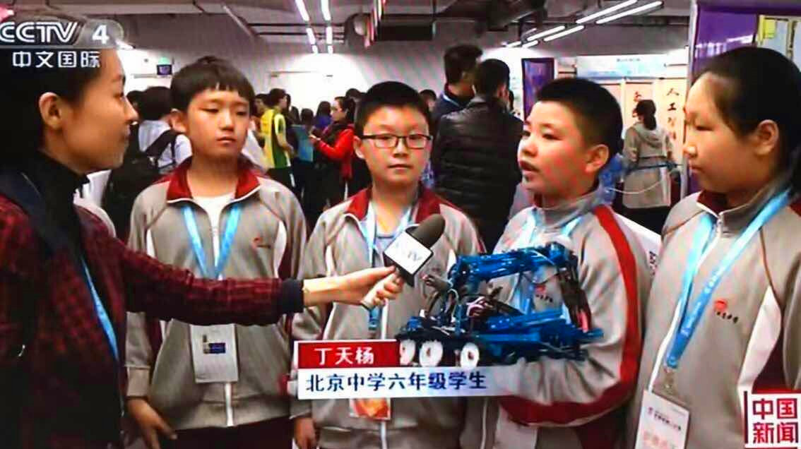 2016年10月19-23日,北京中学“智造万物”兴趣班的10名学生在任志强老师和岳蕾老师的带领下,参加了在亦庄举办的2016年世界机器人大会首届Robocom青少年挑战赛,取得了优异成绩,并在比赛期间接受了中央电视台、新京报等多家媒体的采访。