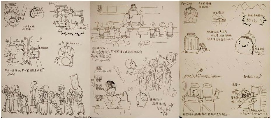 舟车劳顿之后,终是到了黄山脚下。换成登黄山专用的“新国线”,山路波折,四周林木秀美葱郁。单是这一段车上的路程,已让我们写意般匆匆领略了黄山林木秀丽、山势险阻的特点。