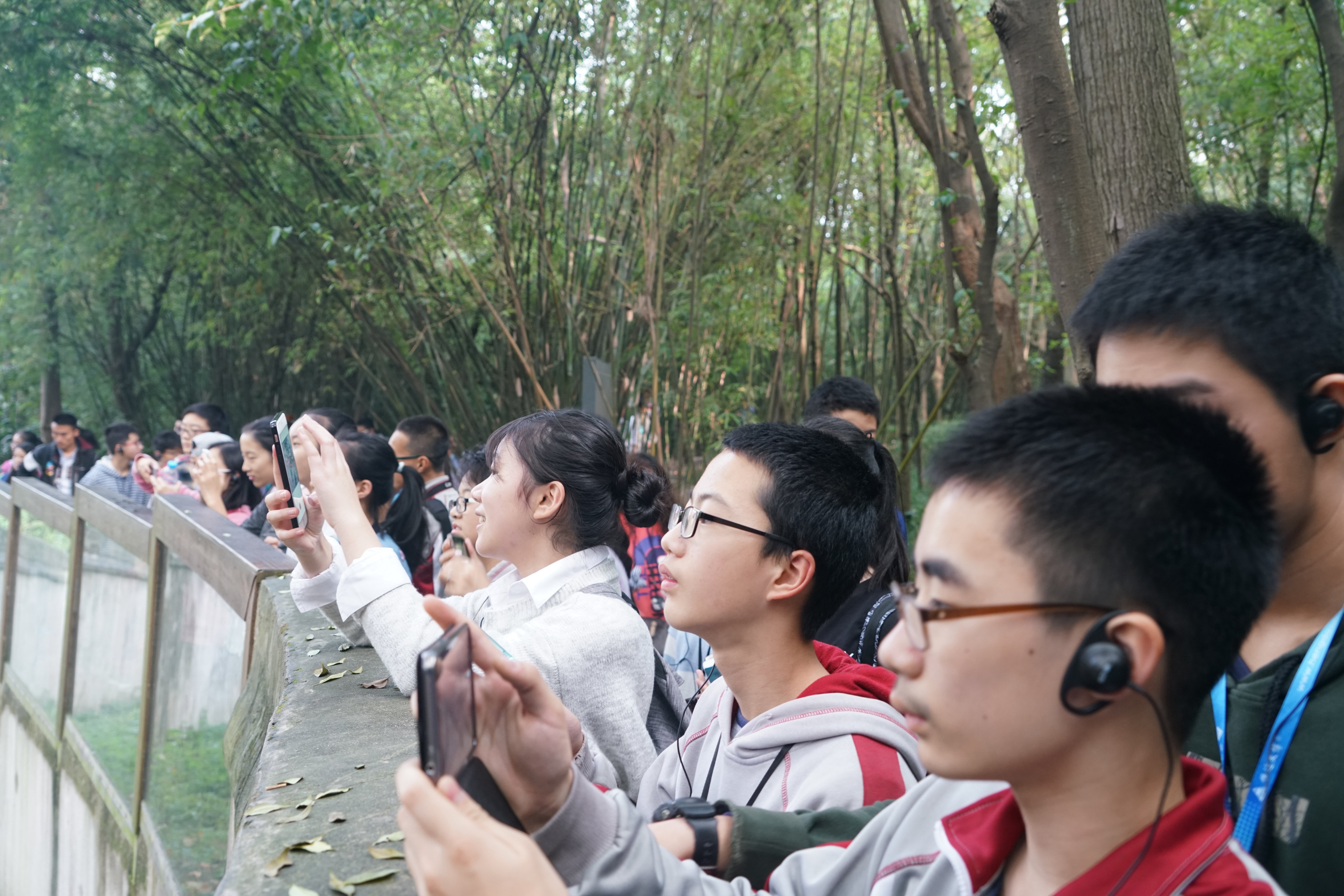 当我们走进这个博物馆后,馆中充斥着同学们满载惊异与宠溺的言语,那笨拙可爱的身躯对于我们来说像是一个小小婴儿。熊猫们都生活在开阔的室外,几根粗壮的木棍搭成的“别墅”承载着他们的欢乐,丛林与树木之间隐藏着生态的真谛。近处,两只熊猫在相互舔着身子,孩子躺在母亲的腿上,尽情的伸展着自己的身躯。远处,一只慵懒的小熊猫趴在木板上,享受着最美味的竹子,享受着他人的关爱与宠溺。它们的每一个动作,每一次翻身,每一次呼吸都刺激着所有人的内心。