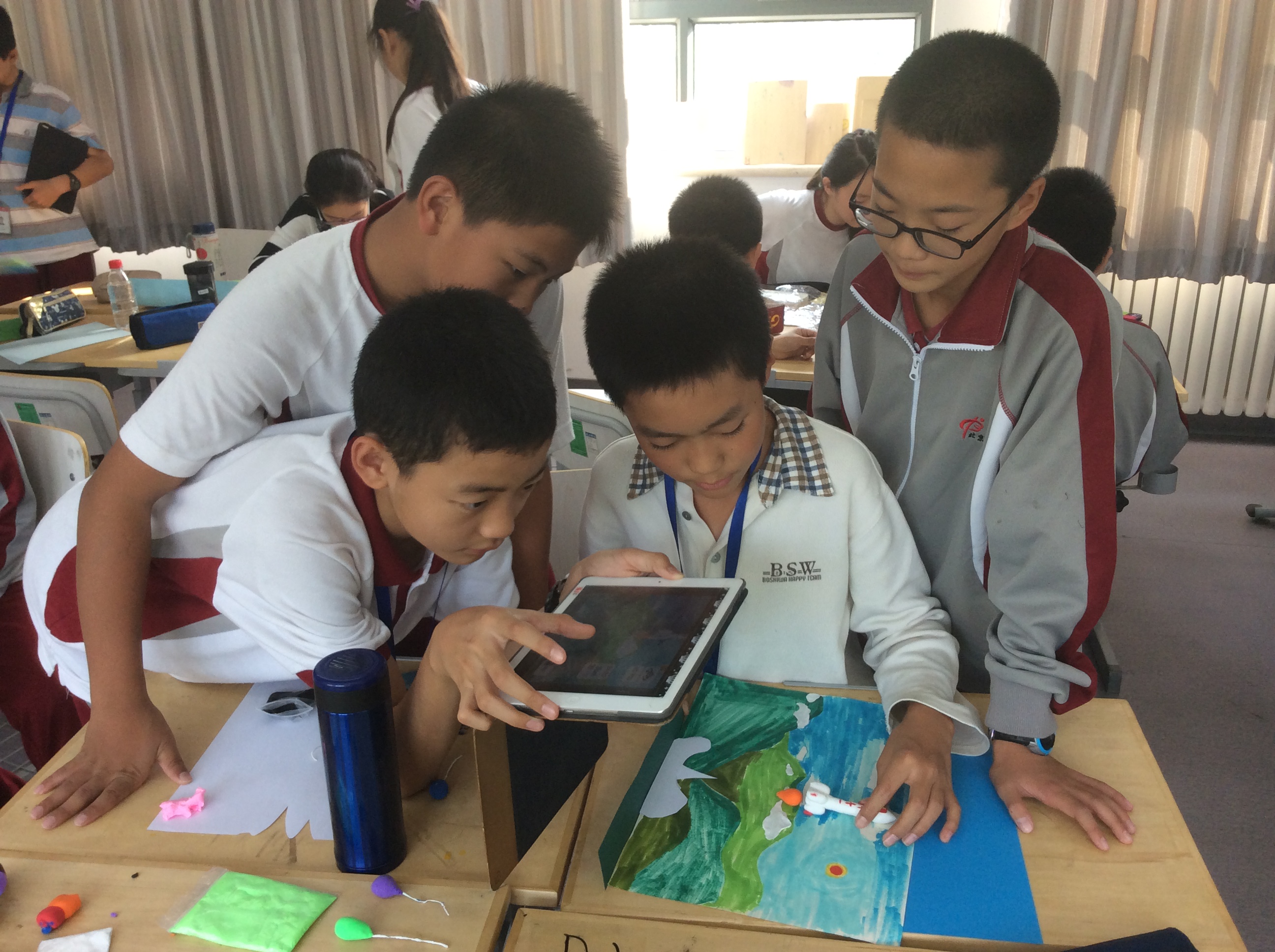 《电影空间艺术设计》是我从六年级开始就一直选择的美术课,在系列课程中,我们从一开始的电影人物服装设计到电影场景设计,再到海报设计与逐格动画拍摄。《北京中学校歌MV》是在《电影分镜头绘制》的课上制作的。我们各组分别认领了校歌歌词中的两句,进行制作这两句的MV片段。