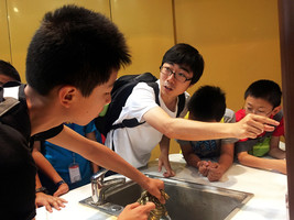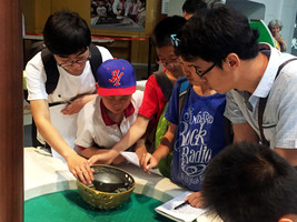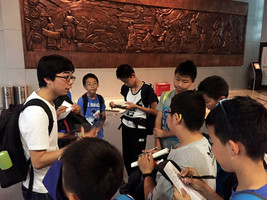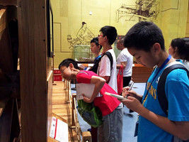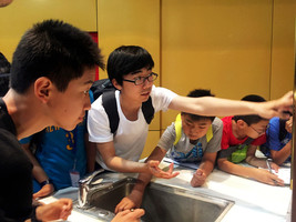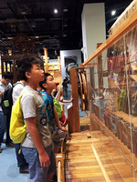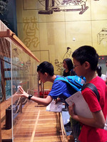 一开始,老师把我们集合在一起,问了我们一个犀利的问题:"来到华夏之光这个展厅,你们一开始会想到什么",我的兴趣一下子就来了,老师由我们远古先民的穿衣打扮联系到了食物,还有住宿条件,在我们激烈讨论中,老师不断的发散我们的思维,来让我们通过讨论了解到更多,老师让我们每一个人都做了一个表格,上面分为几类:衣,食,住,行,文化这五个方面让我们在参观当中能够带着问题去思考,当我们看到一架水利纺车的时候,我们都先被古人的智慧所震撼,可老师却告诉我们,当我们第一眼看到事物的时候,首先我们应该想到的是,这是靠什么来作为动力的?它的用途是什么?怎么运动的?于是,在后来的参观里,我们每一个人都带着问题去思考,如果第一印象没有想出来的话,老师又让我们看一看介绍,于是,短短的一个华夏之光展厅,我们在里面竟然参观了一个多小时,后来,连我们都感到震惊。我感受到了原来发散性思维是可以让我们在一次普通的游览中有着不一样的感受。接下来,我们来到了二层的探索与发现展厅。我们按照老师的方法,开始结成小组,进行自主独立的参观以及学习。我们最主要的参观内容主要分为:数学,物理,化学,生物,以及天文地理方面。我们看到受精卵的发育过程,我们看到了神奇的莫比乌斯环,我们看到一条直线是如何完美的跨过曲面而构成一个双曲面图形的过程,这点,令我感受颇多。我们看到了许多知名的科学家:像达尔文,牛顿,伽力略等。这些,都是我以前没有注意到的。