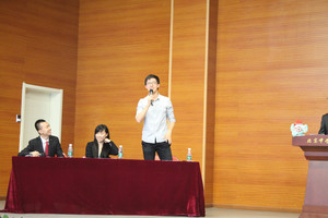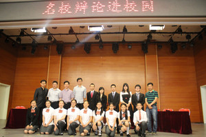 休息了一会儿后,第二场辩论赛开始了。这一场很有看点,正方北京大学代表队——清华学生更幸福;反方清华代表队——北大学生更幸福。而主持人是中山大学的,他会在主持的时候时不时给自己的学校插段广告!北大、清华的学哥学姐立论的时候就说如果说从学术的角度,北大清华其实都差不多,所以他们就从生活的角度上比较了谁更幸福,中间有很多有意思的事情,比如;原来开在北大的一家甜品店生意惨淡,无奈之下到了清华,生意就兴盛了起来,从此北大学生没甜品吃,而清华学生天天有甜品吃;北大学生夏天睡觉,开宿舍门施工声音太大睡不着,不开宿舍门太闷睡不着;清华学生们们天骑车去上课,于是就堵车了;北大学生有时间可以到中关村去吃吃东来顺什么的,清华学生只能吃学校食堂……学哥、学姐们风趣、幽默的辩论,也让我们学到了很多!