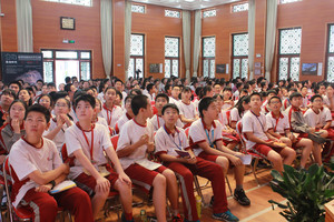 整个报告厅是热闹的,每一次得分后同一方阵的同学都会为自己的队友欢呼鼓掌;整个报告厅也是安静的,所有人都静静地听着认真地看着。