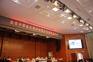 今天,是北京中学“语文周”的最后一天,在今天的中午,全校三个年级的学生按照班级分成了四个方阵,每个方阵都派出了文化底蕴最深厚的选手组成队伍,进行传统文化知识问答。这些选手各个都是学识渊博,早在星期一的时候,我们就在班中进行了初选,这些选手都是各个班中的精英,今天他们也代表了各自方阵各自班级的水平,为荣誉一战。