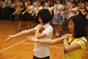 在舞会的最后,六七年级的同学们和在场的老师集聚到了舞池中央,共同用简单的动作进行了互动,拉进师生彼此的距离,同时也体会到了舞蹈所带来的快乐。